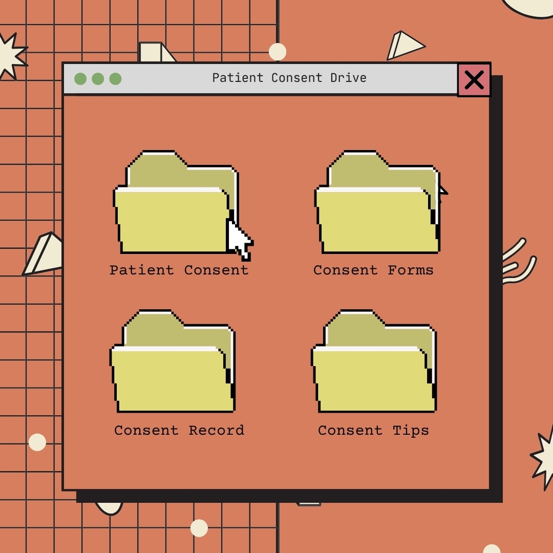 We provide our own customisable consent templates built to meet GDC and GDPR standards, covering photography, video, and testimonial usage. Once collected, all consents are logged securely in your shared folder for full visibility and future audits.